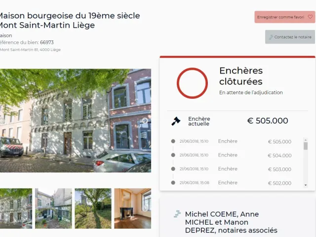 Ce 21/06, le notaire Coeme en charge de la vente de cette maison à Liège, a vu les enchères s’envoler au cours des dernières heures, minutes du sablier.