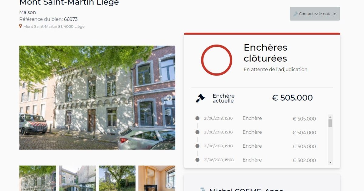 . Le système simple et efficace a récolté plus de 220 enchères en 8 jours ! En toute transparence. C’est une fantastique vitrine d’un notariat moderne et innovant au service du public."