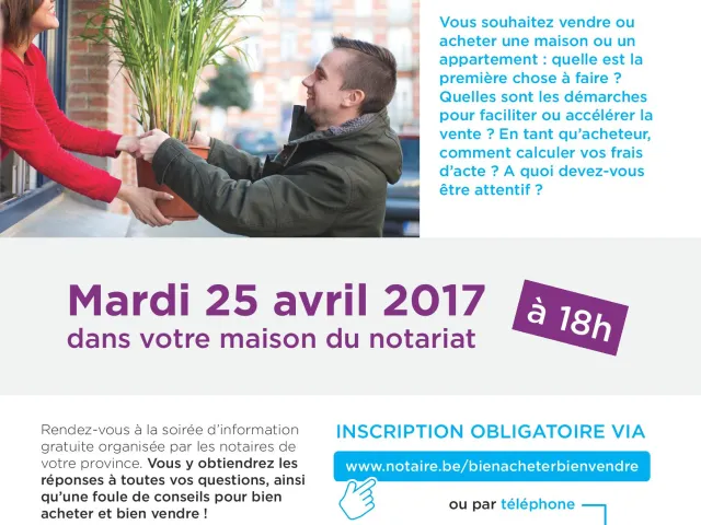 Toutes ces questions seront très largement abordées à l’occasion des conférences grand public qui se donneront dans toutes les maisons du notariat en Wallonie et à Bruxelles ce 25 avril à 18h00.
