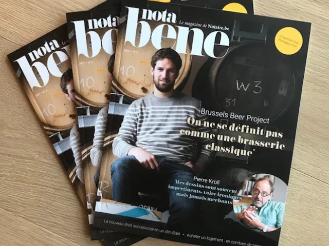 Vous cherchez des informations  sur tous les moments clés de votre vie privée et professionnelle ? Vous les trouvez sur www.notaire-cabinet ! Mais avec NotaBene, outre cette information juridique simple et accessible, ce sont aussi des conseils, de multiples témoignages et interviews avec des personnes connues et moins connues comme dans ce premier numéro où le dessinateur Pierre Kroll nous livre ce qu’il souhaite  laisser comme héritage, ou encore le co- fondateur de Brussel Beer Project qui nous explique son parcours de jeune entrepreneur .