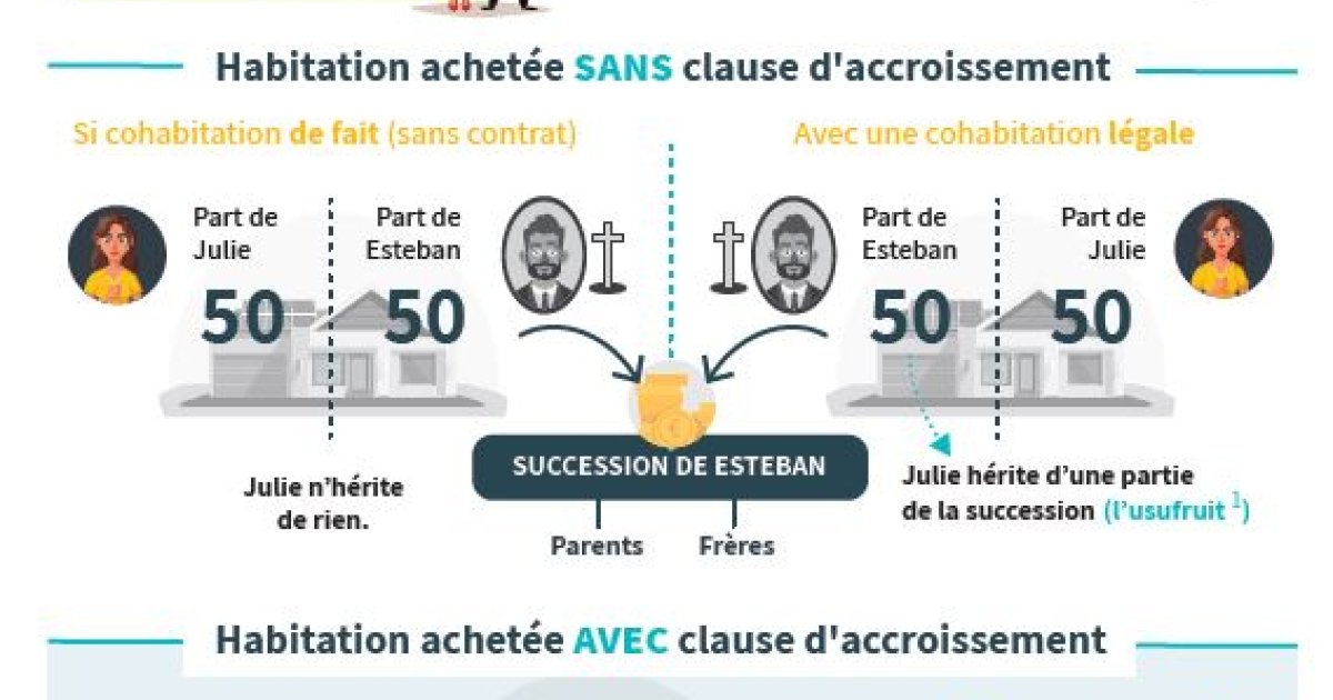 Vous n'êtes pas marié et vous achetez un bien immobilier en commun? En cas de décès de l'un des deux conjoints, l'autre n'est pas protégé. Cela sera la famille du conjoint décédé qui héritera d'une partie du bien immobilier.