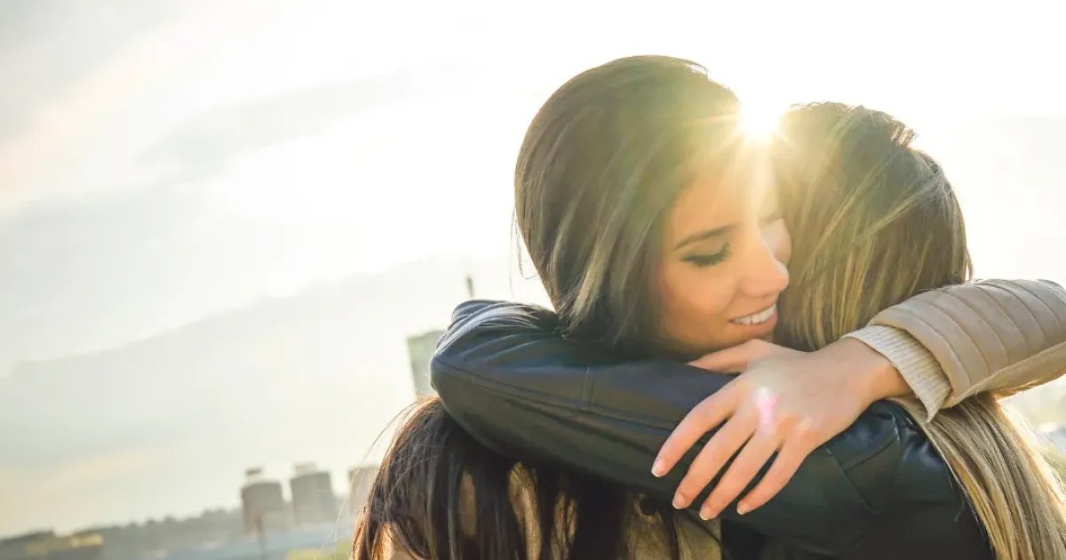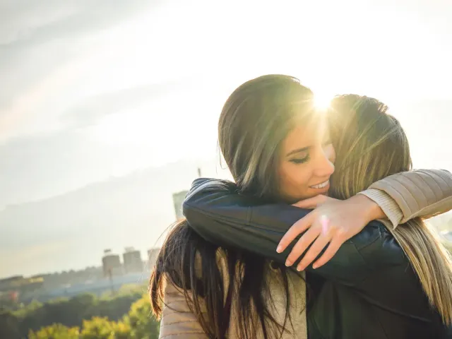 Des frères et soeurs se prennent dans les bras, heureux